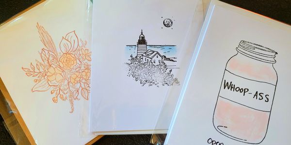 The written word is a powerful thing, especially when accompanied by a hand-crafted image. Every card is hand-stamped, hand-colored, and designed by me.