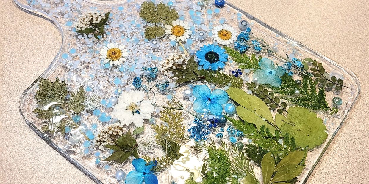 Resin pieces hand-poured and cured in the sunshine of Massachusetts. Each piece contains painstakingly crafted layers of items including fresh flowers, dried flowers, healing stones, and Swarovski crystals. Jewelry and home pieces available, including custom orders.